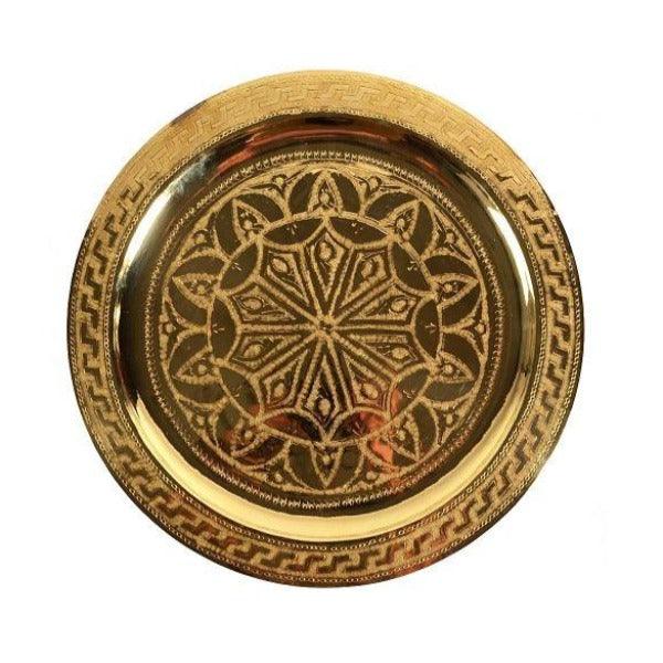 Elegant Moroccan tea tray, handcrafted in brass with a geometric design by the finest artisans of Fez. Available in various sizes, from 45cm to 100cm.