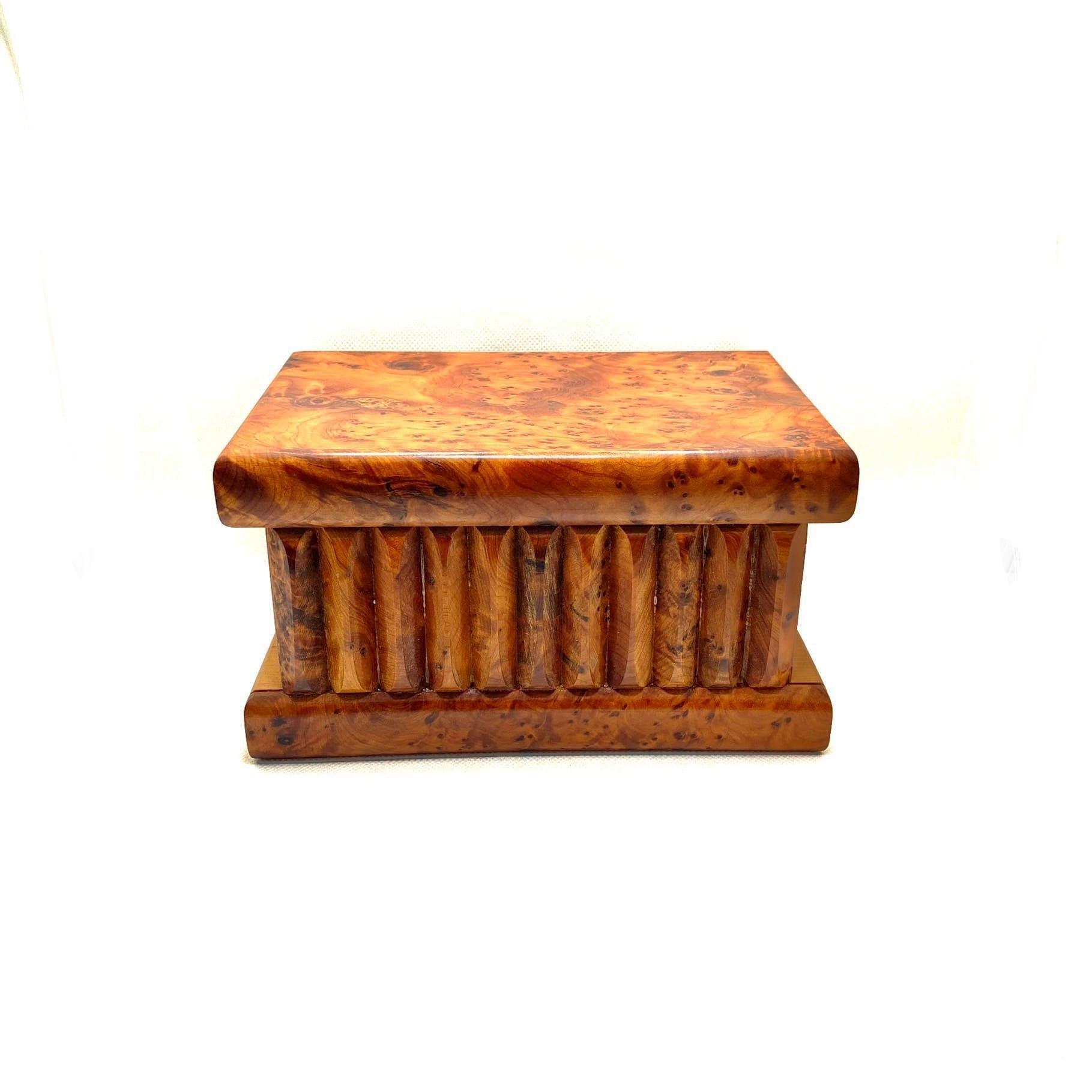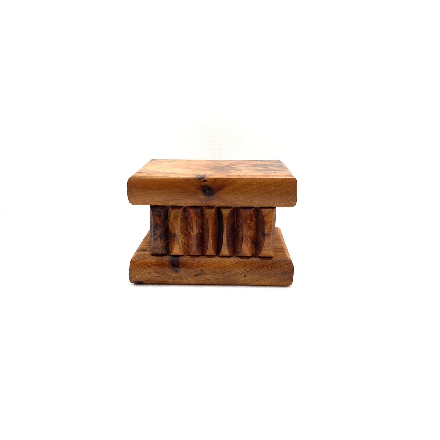Thuja wood is very popular in southern Morocco. It's a high-quality, durable wood that artisans use to craft substantial and long-lasting pieces. It's a solid wood, very limited in availability, and, by the way, it smells wonderful!